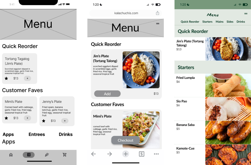 UX/UI design of a mobile site for a Filipino restaurant enabling patrons to keep abreast of community-oriented cultural events and order their favorite meals.